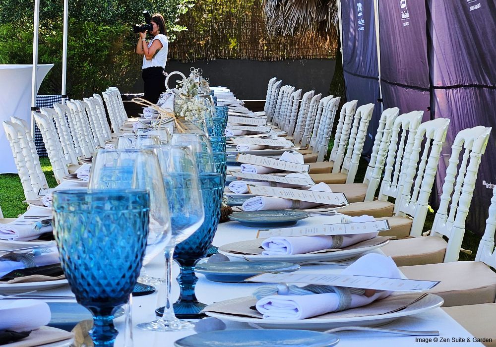 Imagina una ceremonia civil en el jardín, con el atardecer de fondo. Después, un cóctel en la Terraza Bali, con sus velas de sombra y ese aire relajado que invita a charlar sin prisas. Luego, una cena bajo las estrellas (con carpa si el tiempo lo pide). Y si lo necesitas, la Sala Tao climatizada espera para convertirse en el rincón más cool que recuerden tus invitados.